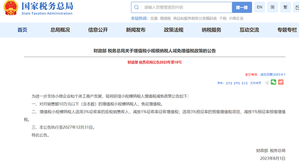 一、对月销售额10万元以下(含本数)的增值税小规模纳税人,免征增值税。